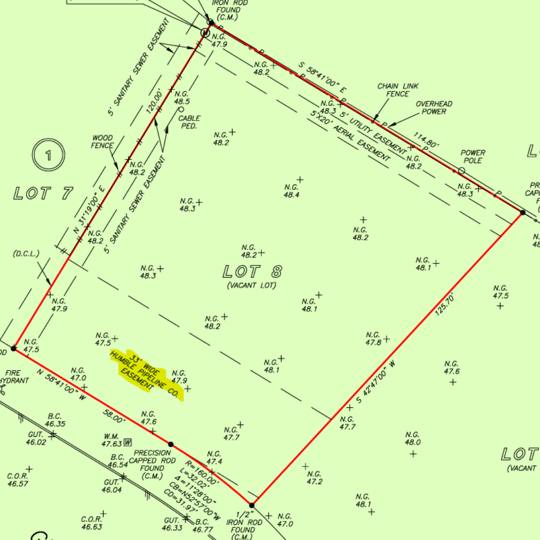 But because we followed a strict due diligence process (the same one in this ebook), we caught an abandoned pipeline easement buried in the survey. That lot was effectively unbuildable.